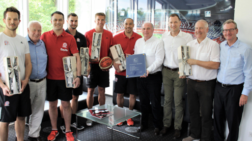 Das Präsidium des FC Bayern München hat am Dienstagnachmittag die erfolgreichen Trainer von U14 und NBBL zu ihren Titel beglückwünscht. Begleitet wurden die Nachwuchstrainer von der Abteilungsleitung.