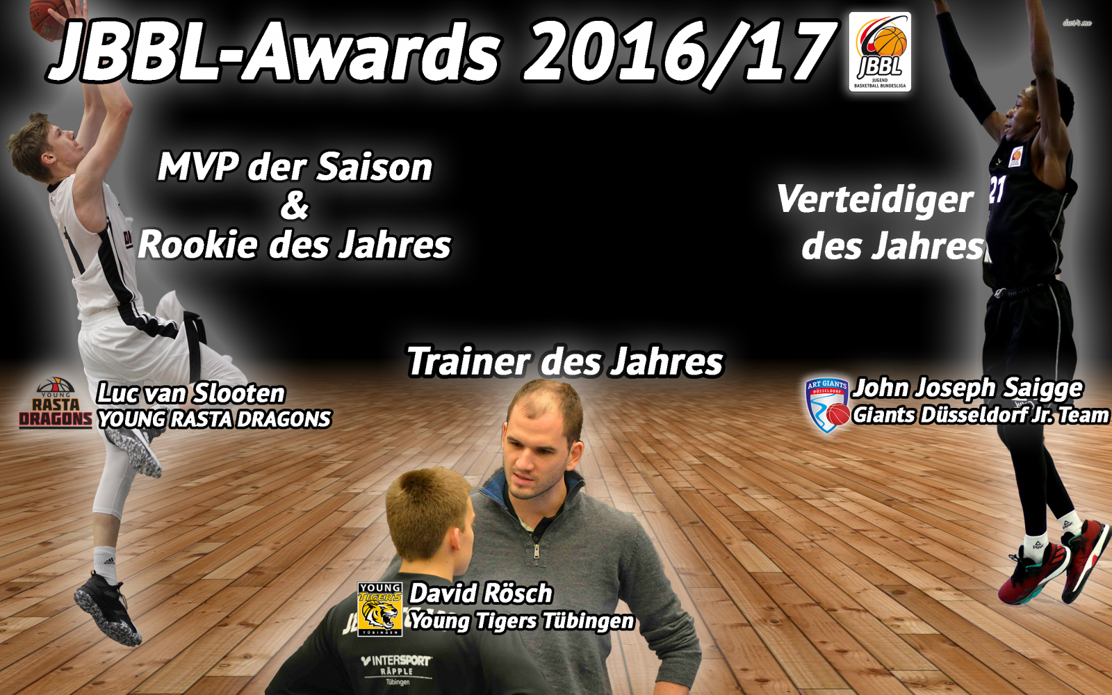 Im Rahmen des NBBL/JBBL TOP4 am Wochenende (27./28. Mai) in Frankfurt werden traditionell auch die Auszeichnungen für individuelle Topleistungen in der Saison 2016/17 vergeben. Ein besonderes Kunststück ist dabei Luc van Slooten (JBBL, YOUNG RASTA DRAGONS) gelungen, der als „Rookie des Jahres“ auch die MVP-Trophäe verliehen bekommt.